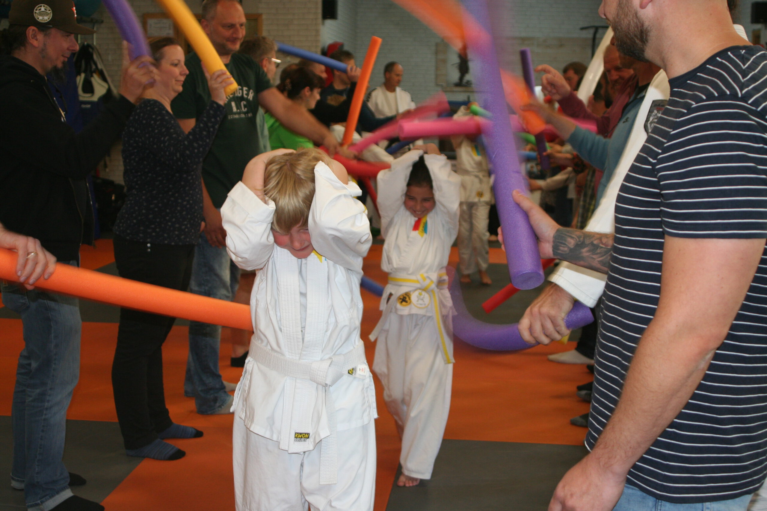 Poolnudel-Kampf. Das übergeordnete Ziel ist es, im Rahmen des Eins-gegen-Eins-Kampfes den Gegner mit der Poolnudel zu treffen und Treffer zu verhindern. Immer in Bewegung bleiben, Distanz schaffen wenn nötig und den Gegner trotzdem beobachten. Teilnahme natürlich freiwillig, aber alle wollen mitmachen.
